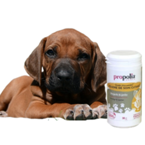 Bij jeuk, huiduitslag en andere huidkwaaltjes biedt de huidpoeder van Propolia® uw huisdier verlichting met de natuurlijke werking van propolis en heermoes.